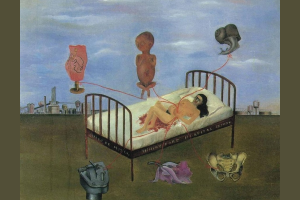 আরেকটি বিখ্যাত চিত্র “Henry Ford Hospital” (১৯৩২)-এ তিনি গর্ভপাতের অভিজ্ঞতা, রক্তাপাত, মাতৃত্বের কষ্ট ও হেরে যাওয়া মাতৃত্বের অনুভূতিকে চিত্রিত করেন। এ চিত্রে, বিছানায় শুয়ে থাকা নগ্ন ফ্রিদার চারপাশে ছয়টি জিনিস ঝুলছে- ভ্রূণ, ফুল, পেটের অংশ, হাড়, যোনির প্রতীক- যা এক নারীর মাতৃত্বহীনতার বেদনাকে প্রকাশ করে।